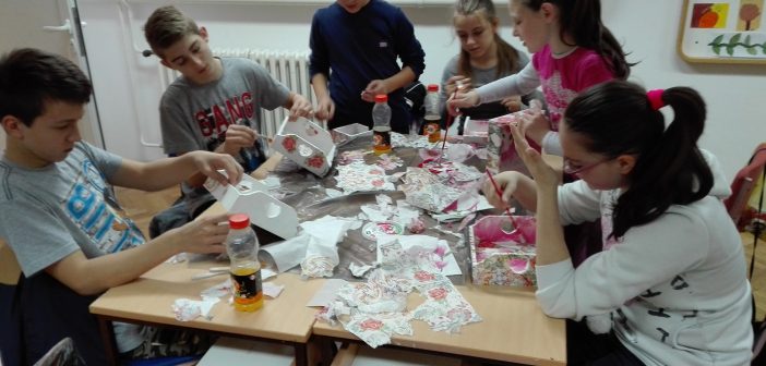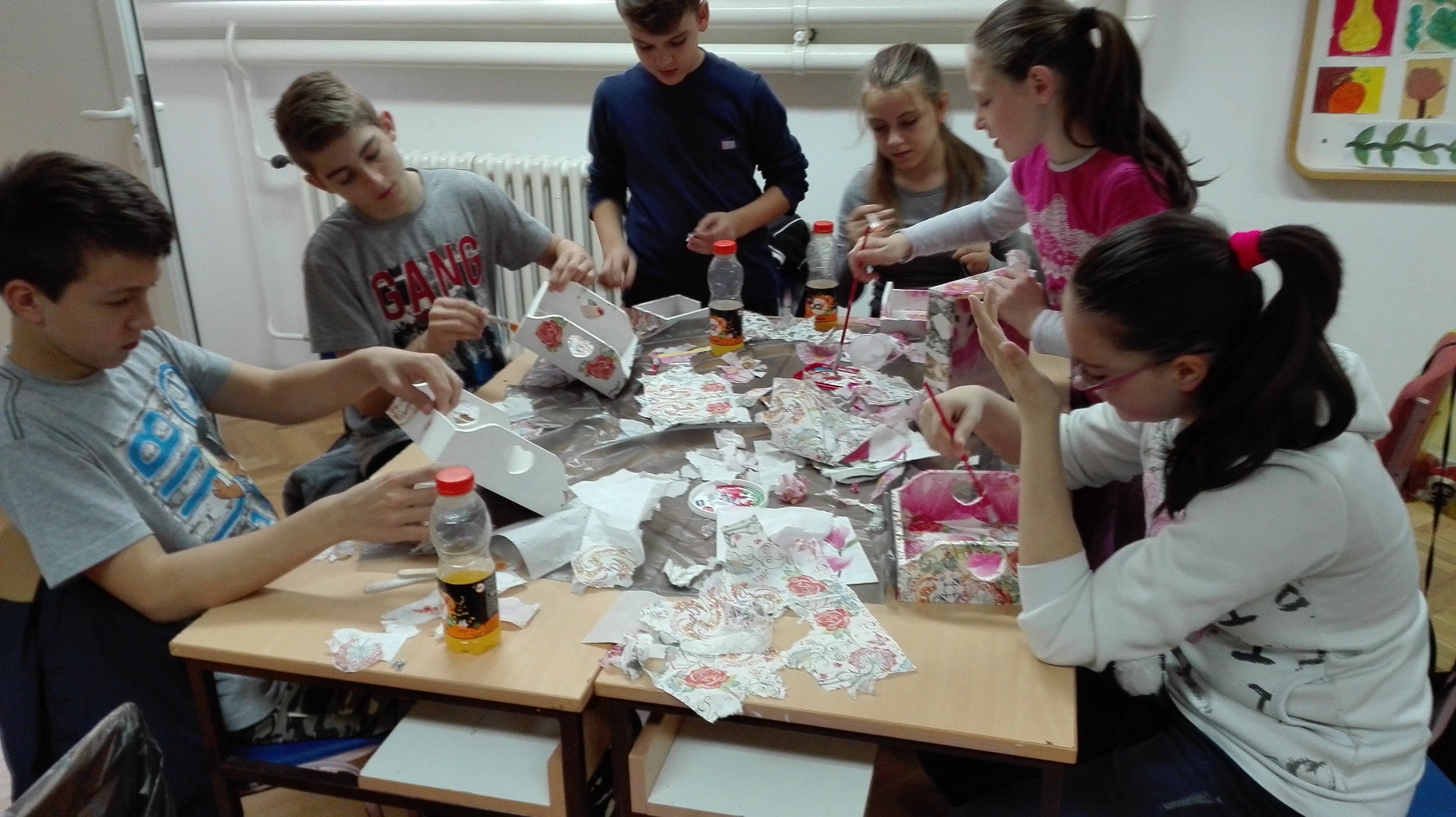 Учесници радионице, ученици основних и средњих школа , упознали су се са декупаж техником, као и другим ликовним техникама које оживљавају старе предмете.Декупаж техника је једна од најстаријих техника украшавања предмета и даје неограничен простор машти и креативности. Активности су пружиле могућност заједничког дружења и да се на креативан, стваралачки начин искористи слободно време.Водитељ радионице је Ана Матејић, педагог .Покровитељ програма: Град Београд – Секретаријат за спорт и омладину.