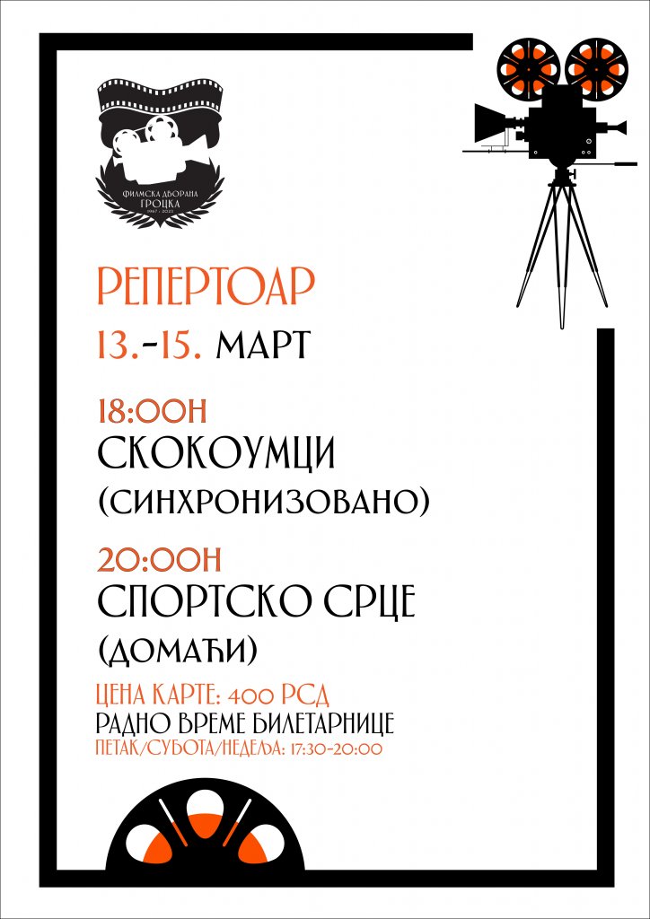 * Радно време билетарнице биоскопа почиње 30 минута пре прве дневне пројекије и затвара се након почетка последње дневне пројекције. Цена биоскопске карте је 400 динара. У простор Филмске дворане Гроцка није дозвољено уношење хране и пића купљених ван простора дворане.