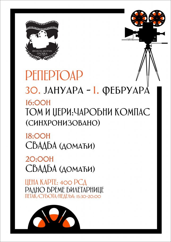 Репертоар ФИЛМСКЕ ДВОРАНЕ ГРОЦКА од 30. јануара до 1. фебруара