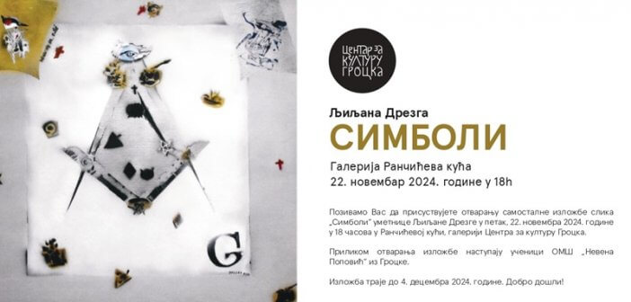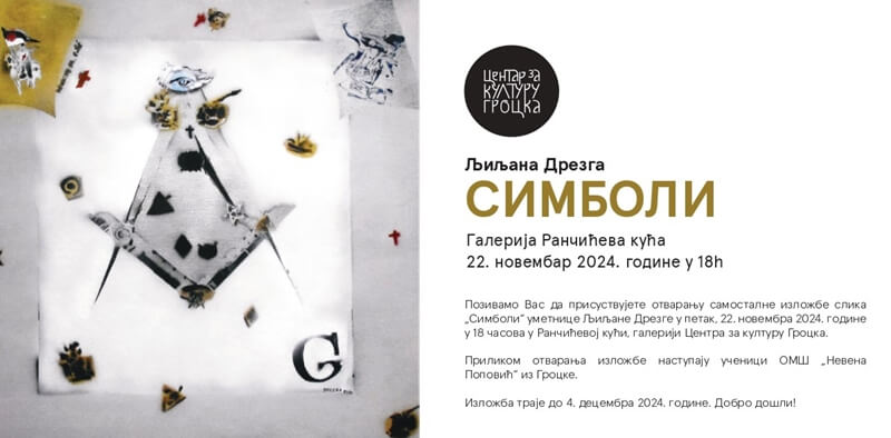 Самостална изложба слика „Симболи“ Љиљане Дрезге биће представљена у петак 22. новембра 2024. године од 18 часова у Ранчићевој кући, галерији Центра за културу општине Гроцка (Мајевичка 9, Београд-Гроцка).