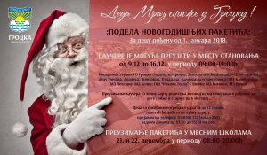 Започеле су припреме за овогодишњу поделу новогодишњих пакетића за најмлађе становнике Гроцке. Пакетићи су намењени деци рођеној од 1. јануара 2018. године и предвиђено је да се преузимају уз ВАУЧЕР.