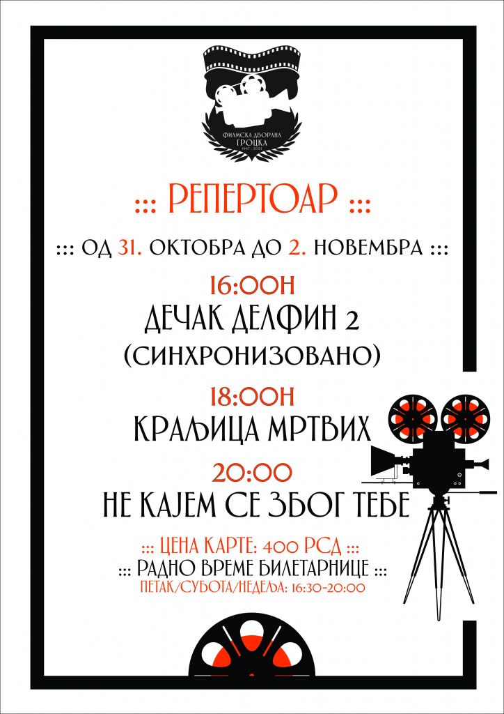 * Радно време билетарнице биоскопа почиње 30 минута пре прве дневне пројекије и затвара се након почетка последње дневне пројекције. Цена биоскопске карте је 400 динара. У простор Филмске дворане Гроцка није дозвољено уношење хране и пића купљених ван простора дворане.