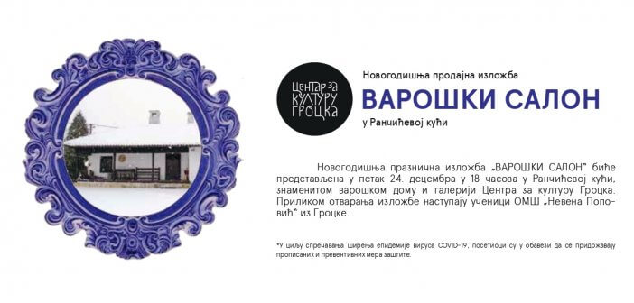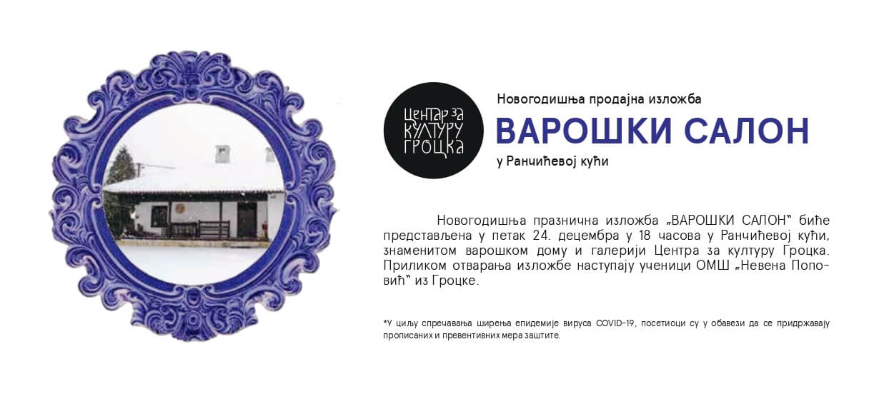 Традиционална празнична изложба „Варошки салон“ у Ранчићевој кући, галерији Центра за културу Гроцка, аутентичном варошком дому, биће отворена у петак 24. децембра у 18ч за посетиоце. Новогодишња групна поставка окупља око 30 уметника и представља бројне и разноврсне радове ликовне и примењене уметности. Изложбу ће отворити Зорица Атић, историчарка уметности.